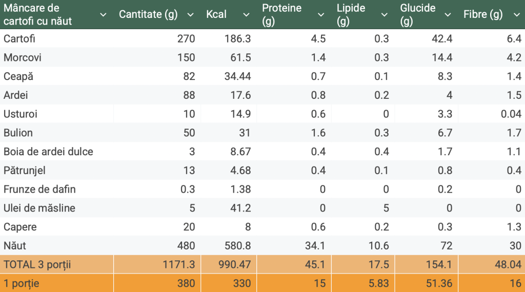 | Năut | 2 conserve (cantitatea netă – 480 g) |
